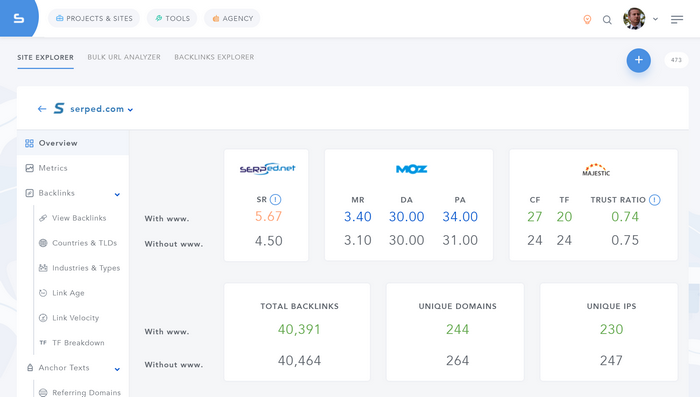 With SERPed 3.0 you also get more data, including more metrics. For example, in SERPed 2.0, Backlinks Manager only displayed Moz metrics. In SERPed 3.0, Backlinks Manager now displays Majestic metrics as well, which means you can now see the Citation Flow and Trust Flow of all the backlinks you monitor. That's more data, at no extra cost for you.